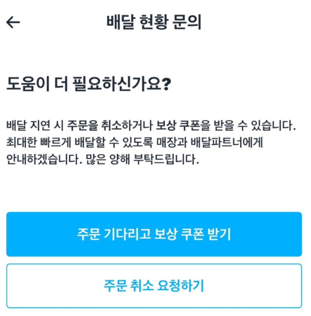 배달 지연 보상 쿠폰은 모든 배달 지연에 적용되는 것이 아닙니다.